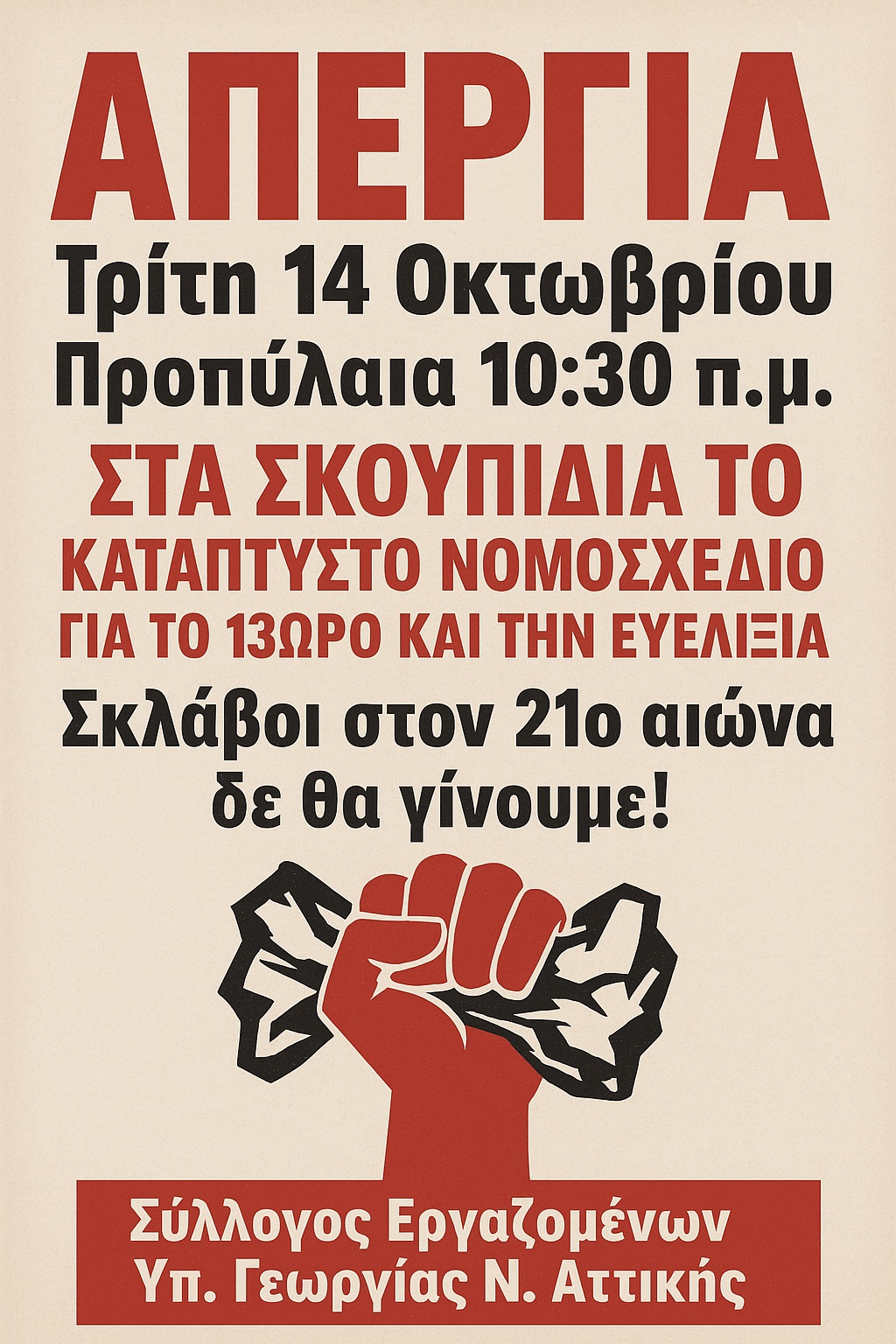 ΟΛΟΙ ΣΤΗΝ ΑΠΕΡΓΙΑ ΤΗΝ ΤΡΙΤΗ 14 ΟΚΤΩΒΡΗ